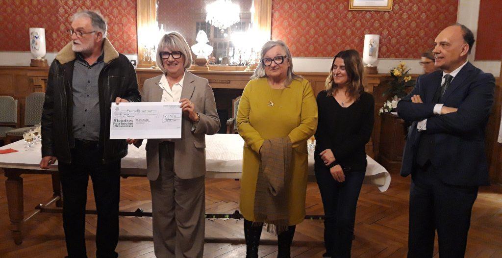M. Lenne remet un chèque de2730 euros, montant du mécénat offert à la Ville de Bressuire pour l'acquisition de l'Atlas de la baronnie de Bressuire